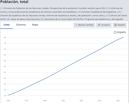 Banco Mundial. (s. f.-a). World Bank Open Data. Recuperado 10 de octubre de 2024, https://datos.bancomundial.org/indicator/SP.POP.TOTL?end=2023&start=1960&view=chart