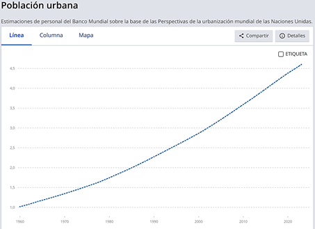 Banco Mundial. (s. f.-b). World Bank Open Data. World Bank Open Data. Recuperado 6 de octubre de 2024, de https://datos.bancomundial.org/indicator/SP.URB.TOTL.IN.ZS?end=2023&start=1960&view=chart